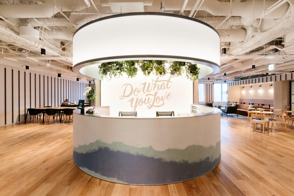 这处WeWork办公空间坐落在繁华的复兴中路上,地铁1/10/12号线陕西南路直达。在复兴路通透又宽敞的办公空间里,原本在贵州用来运东西的草编背篓做成了灯罩;非洲手工小矮凳和现代家居巧妙地结合;大片绿色植物墙将莫干山的一抹自然带到城里。透过落地窗,你可以360度全方位感受充满上海生活气息的街景,创造生活,而不仅仅是生存。